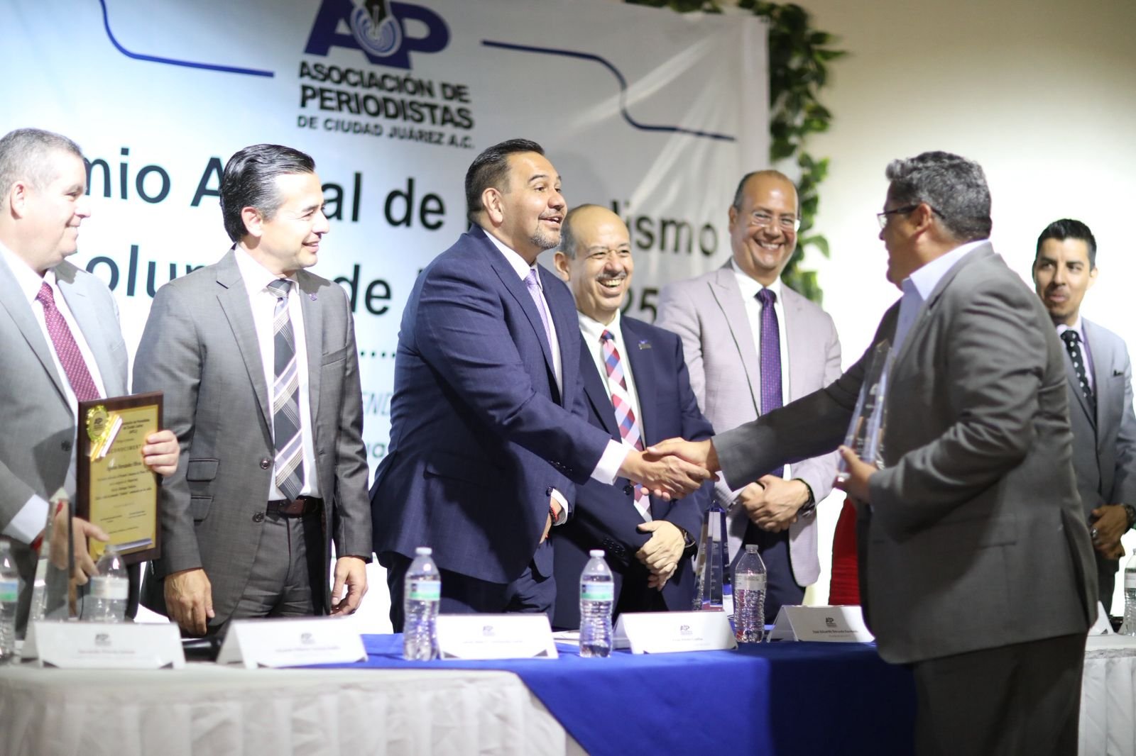 En el marco de la premiación, el alcalde tomó protesta a la nueva mesa directiva 2025-2027 de la APCJ, encabezada por Eduardo Borunda.Pérez Cuéllar destacó la pasión con la que trabajan los periodistas juarenses.