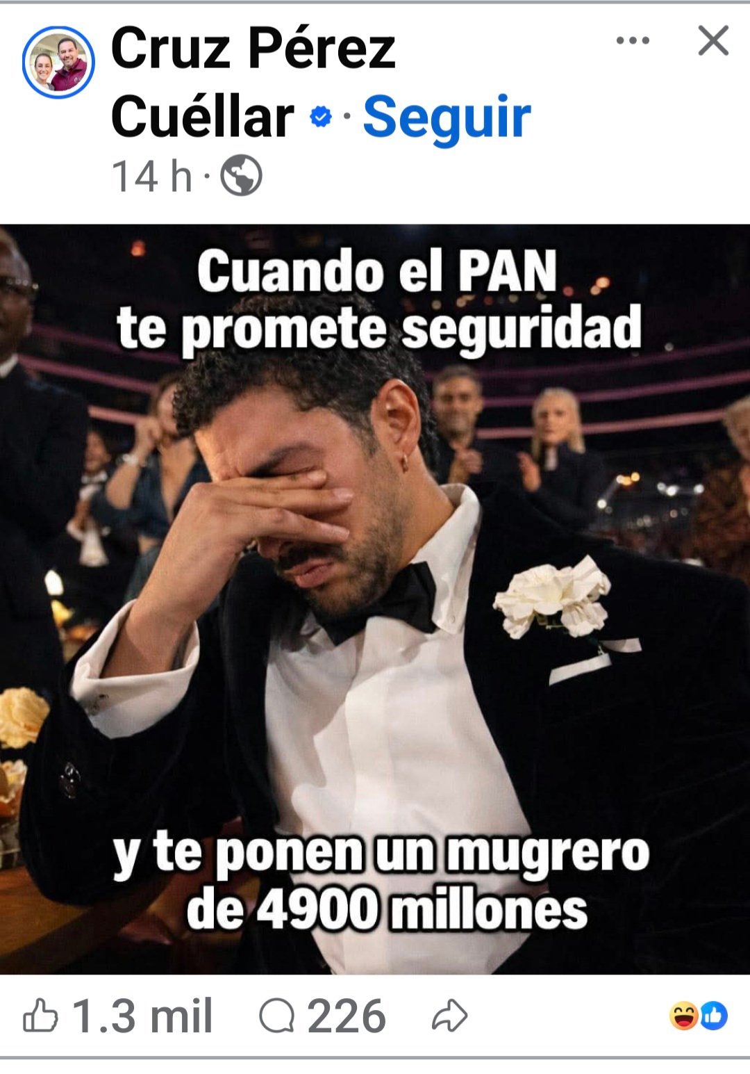 En la publicación, el edil juarense acompañó la imagen con la frase “cuando te prometen seguridad y te dan un mugrero de 4,900 millones de pesos”, en clara alusión a los resultados en materia de seguridad pública y al costo de la Torre Centinela, proyecto emblemático de la administración estatal encabezada por la gobernadora Maru Campos.