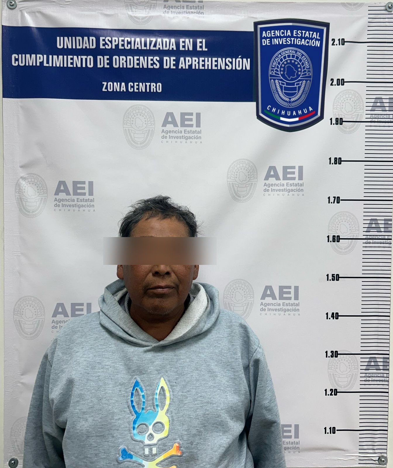 Agentes de la Agencia Estatal de Investigación (AEI) arrestaron a Hilario T. J. en la colonia División del Norte de la ciudad de Chihuahua, en cumplimiento a una orden de aprehensión por el delito de violencia familiar. La detención se llevó a cabo el lunes 24 de marzo, tras una investigación de la Fiscalía Especializada en Atención a Mujeres Víctimas del Delito por Razones de Género y a la Familia.