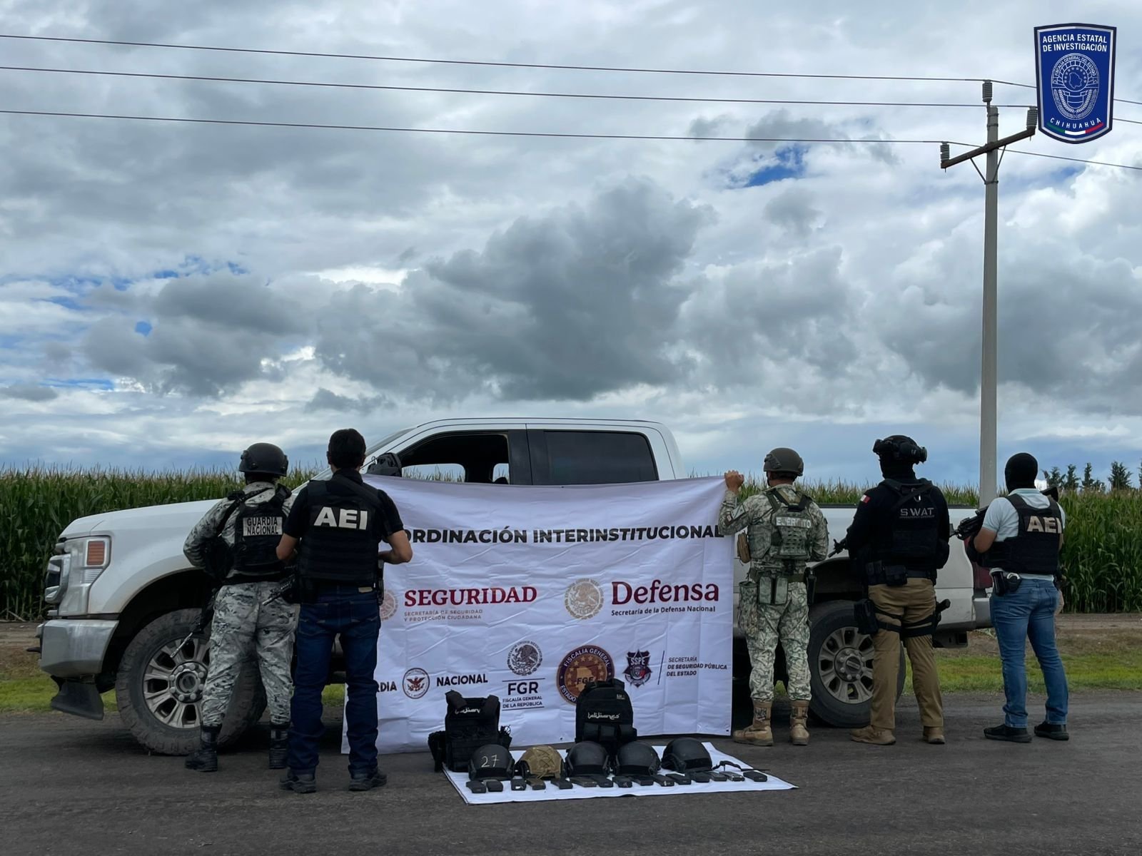 Aunque la Fiscalía reportó el aseguramiento de un vehículo robado en Texas, además de cargadores, cascos balísticos y chalecos antibalas, el hecho vuelve a evidenciar que los grupos criminales siguen operando con fuerza en la región serrana.